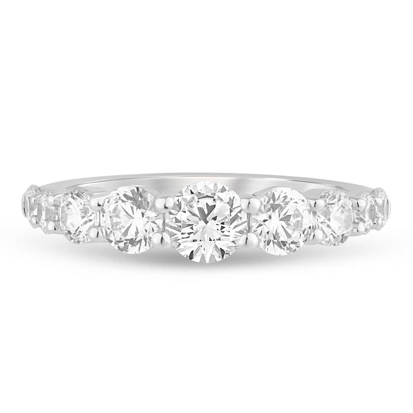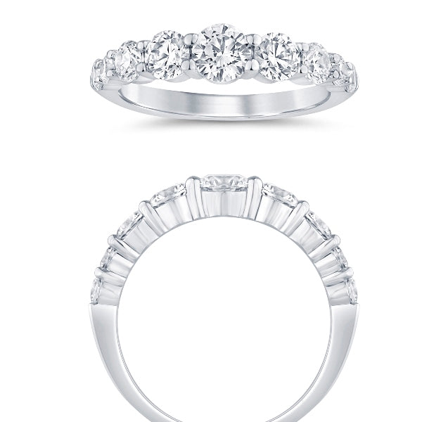 Celebrate your marriage with this stunning 14K Shared Prong Graduate wedding band, expertly crafted in white and yellow gold. Featuring 1.5 carats of diamonds, this piece combines timeless elegance with modern precision. Perfect for everyday wear or as a meaningful addition to your bridal collection.