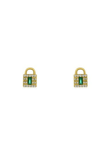 These refined Diamond & Emerald Lock Stud Earrings showcase the perfect marriage of precious stones and 14k gold craftsmanship. The vibrant emeralds provide a captivating contrast against brilliant diamonds, all secured in our distinctive lock design. Versatile enough for daily sophistication yet striking enough for special occasions, these studs represent timeless luxury with contemporary sensibility—a discreet symbol of discerning taste.
