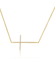 This 14k gold necklace features a sleek side cross pendant accented with a sparkling diamond, blending classic symbolism with modern elegance. Its refined design offers a subtle yet striking statement, perfect for adding a touch of sophistication to any ensemble.